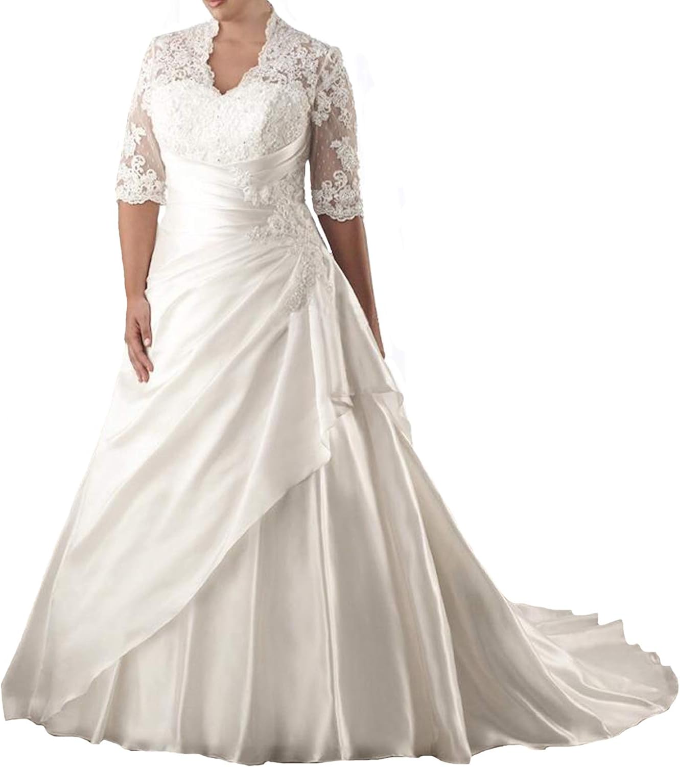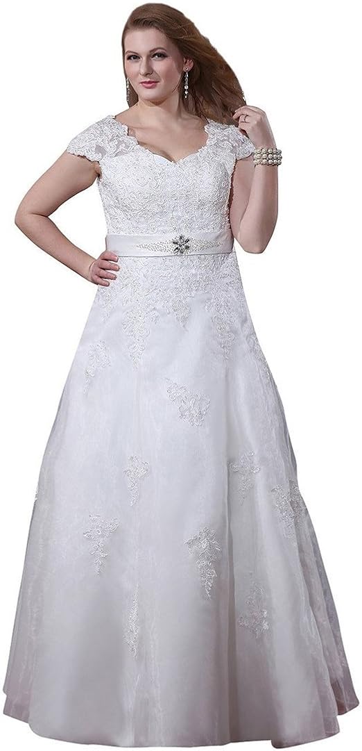 Amazon Com Yingdress Women S Lace Short Sleeves Plus Size Wedding Dresses Keyhole Back Bridal Gowns Clothing