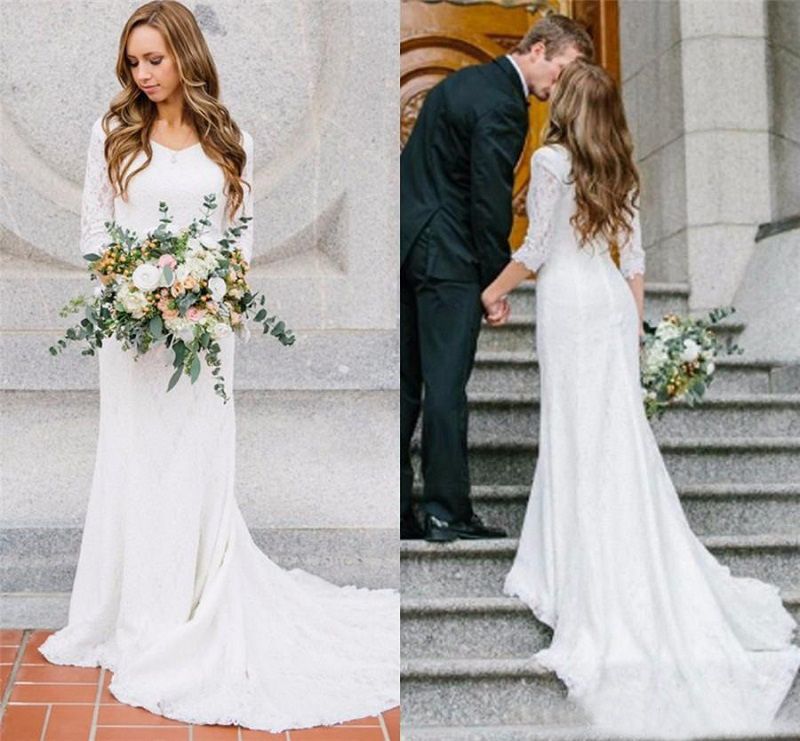 Vintage Modest Beach Wedding Dresses 2017 With Long Sleeves