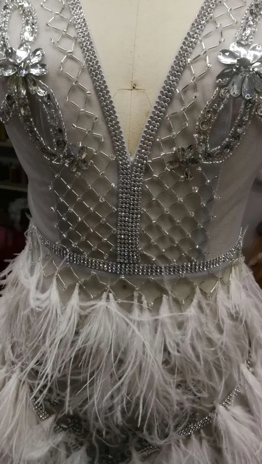 Berta 2019 Ostrich Feather Sexy Cocktail Dresses Spaghetti V Neck Backless Beaded Prom Gowns Illusion Short Formal