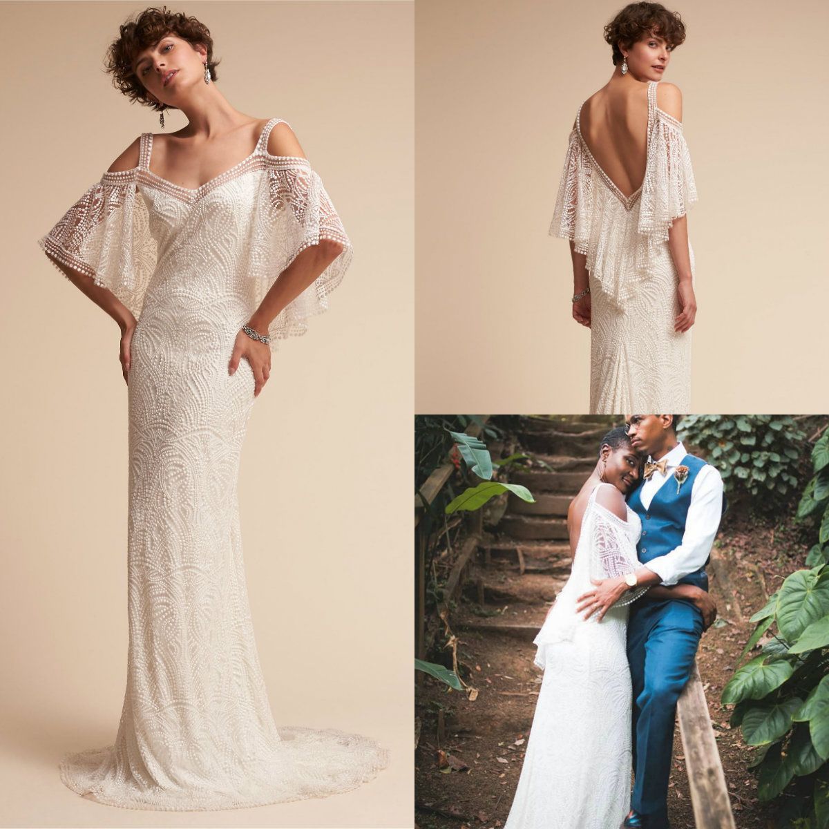 Lace wedding dresses combine the most romantic day of your life with the most romantic of fabrics. Since then countless brides have dreamed of wearing elegant wedding dresses with lace accents. We love the intricate texture and depth of romantic lace wedding dresses. 2 bhldn anthropologie gray beaded flutter sleeve v neck gown dress nwt 0906ch.
