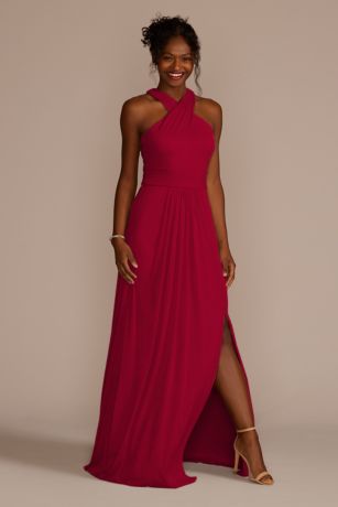 Mesh Crisscross High Neck Bridesmaid Dress David S Bridal