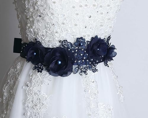 Amazon Com Dark Blue Wedding Sash Belt Swarovski Pearl Blue Belt