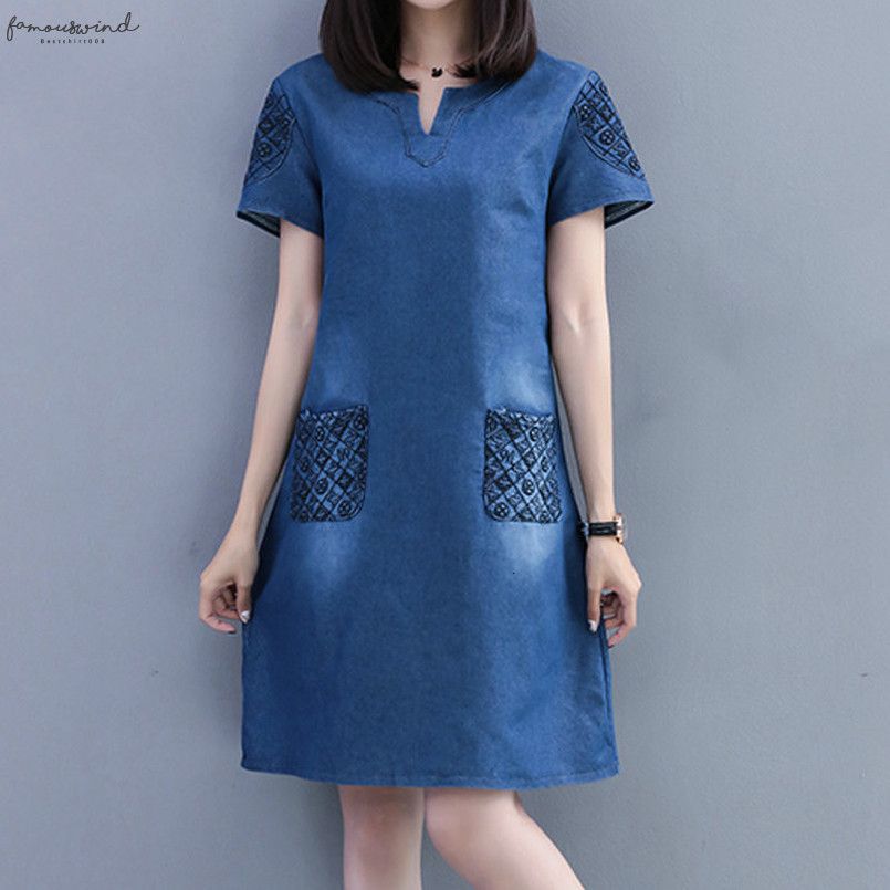 Fashion Embroidery Vintage Dresses Women Summer Blue Denim Dress Women Casual Short Sleeve Large Size Vestidos Mujer Jeans Dresses Dress Styles Wedding Party Dresses From Redwomen66 22 42 Dhgate Com