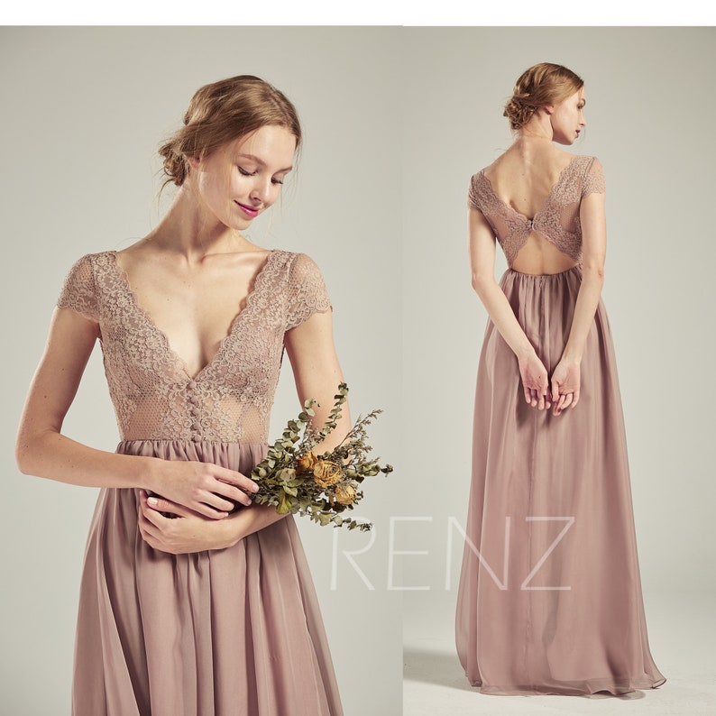 Bridesmaid Dress Rose Gray Boho Lace Wedding Dress V Neck Long Etsy