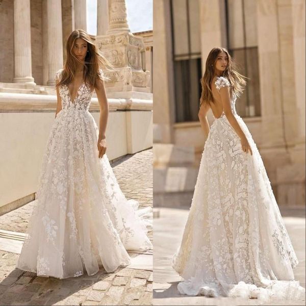 Fashionbride Women S Bohemian Wedding Dresses Short Sleeve V Neck