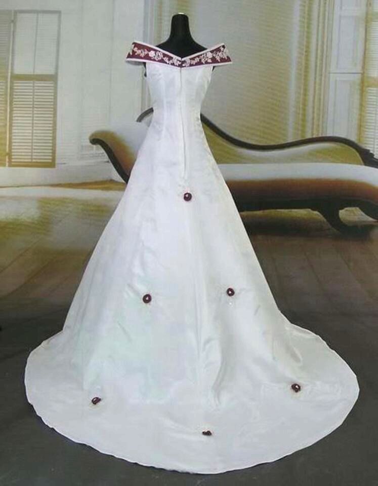 Discount Stunning White And Burgundy Wedding Dress Vintage