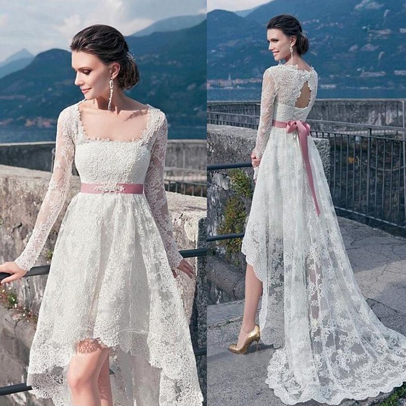 Discount High Low Wedding Dresses Sash In Pink Square Neck