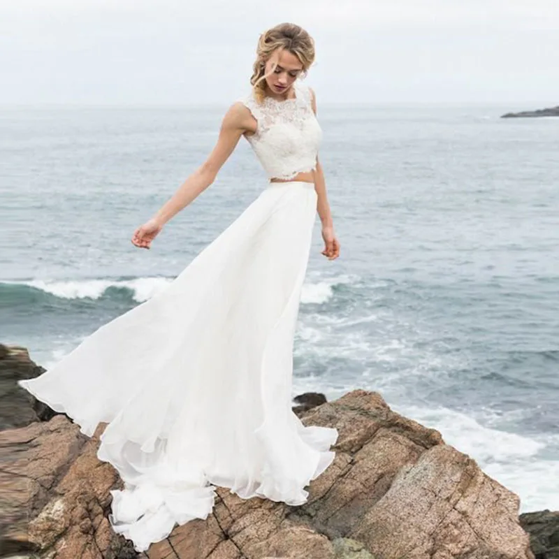 Seductive Lace 2 Two Piece Wedding Dresses Summer Chiffon Beach