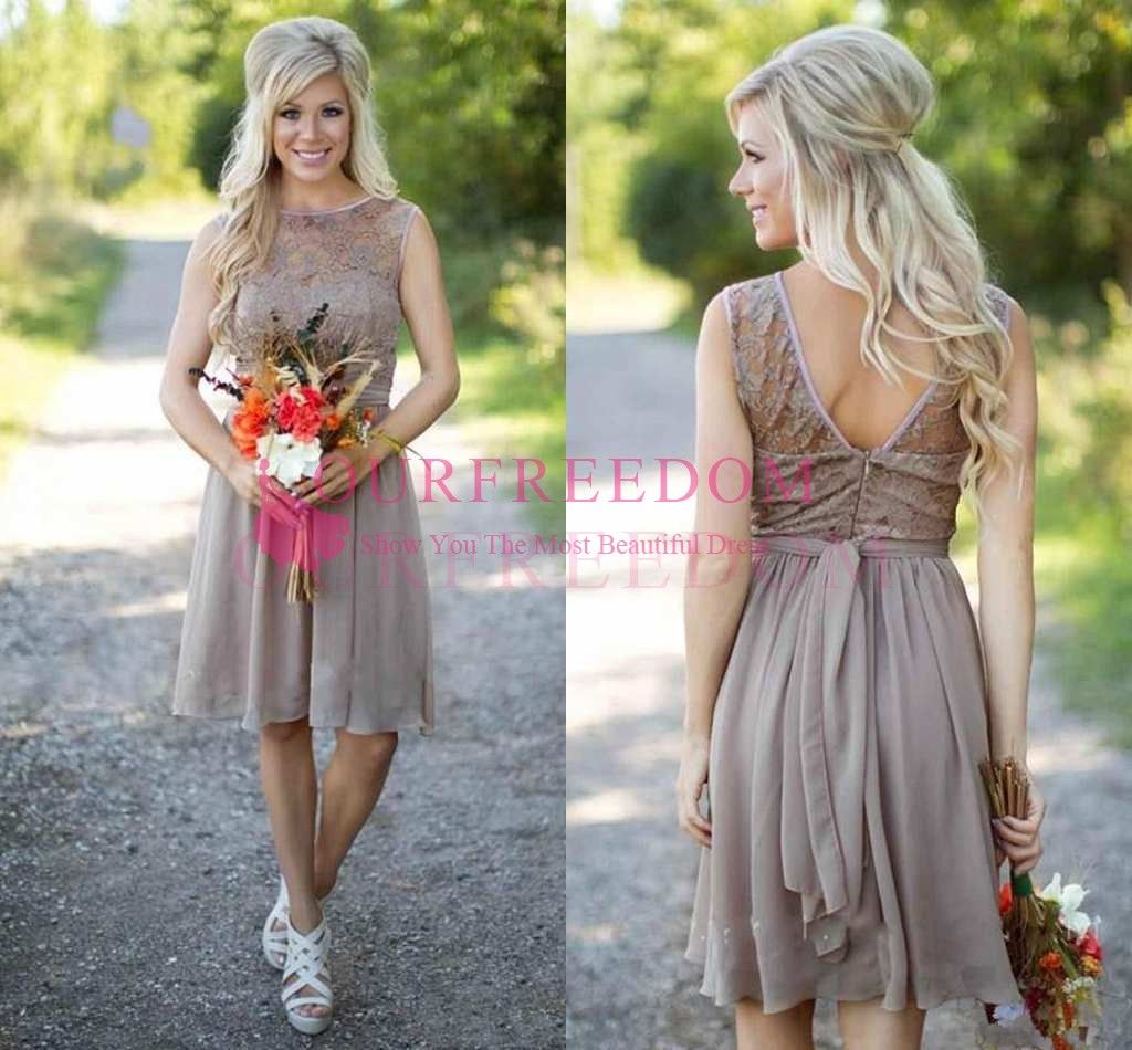 2019 Chiffon Short Country Bridesmaid Dresses Lace Top Bridesmaids