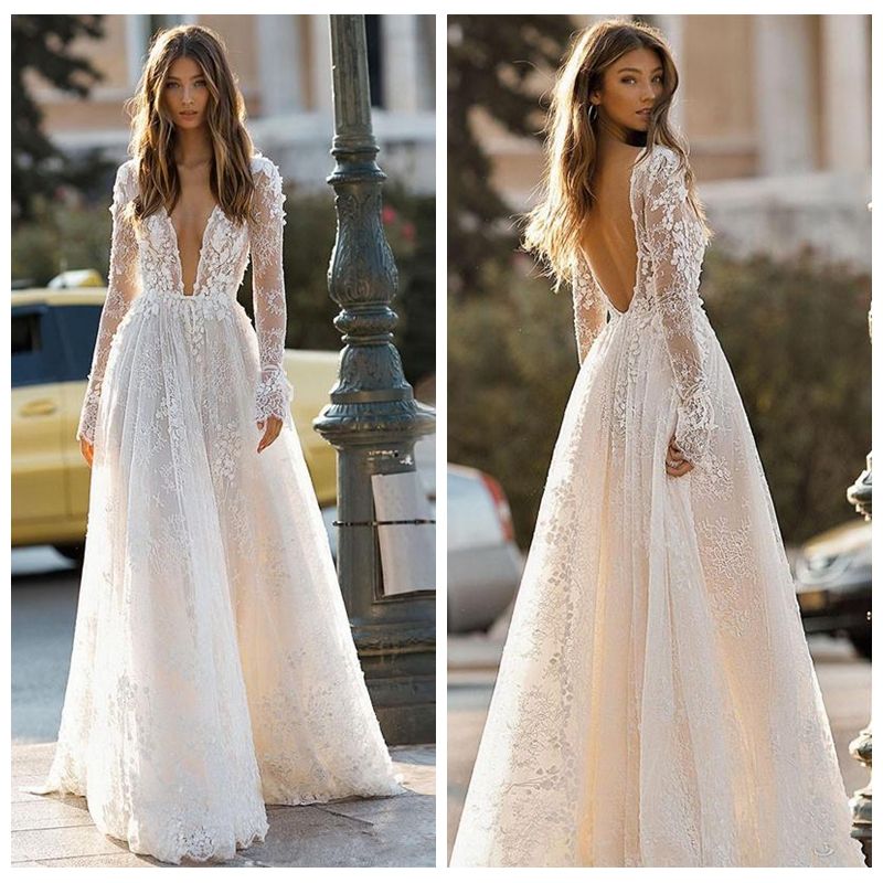 2018 Vintage Lace Wedding Dress Long Sleeves Appliques Sexy Deep V
