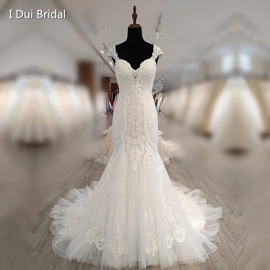 Cap Sleeves Lace Detachable Beaded Real Pictures Wedding Dress