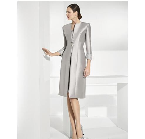 Silver Lace Mother Of The Bride Dresses With Long Sleeves Satin Jacket Sheer Jewel Neck Wedding Gues On Luulla