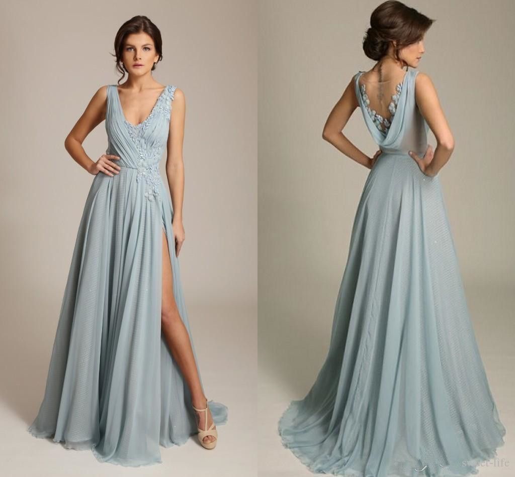Beach Wedding Dress Dusty Blue Chiffon Evening Dress Long Sleeve