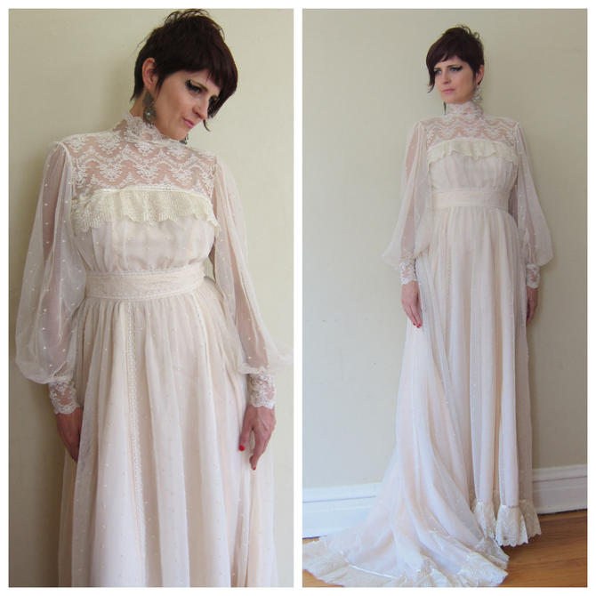 1980s Wedding Dress 80s Neo Edwardian Wedding Dress Ivory Mesh
