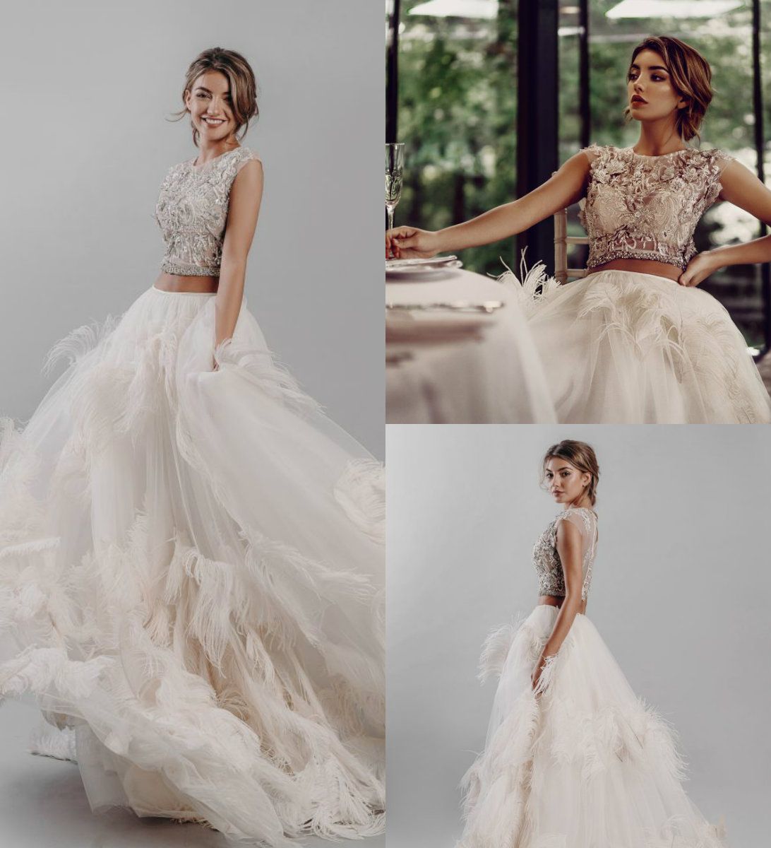 Discount 2019 Two Pieces A Line Bohemian Wedding Dresses Jewel