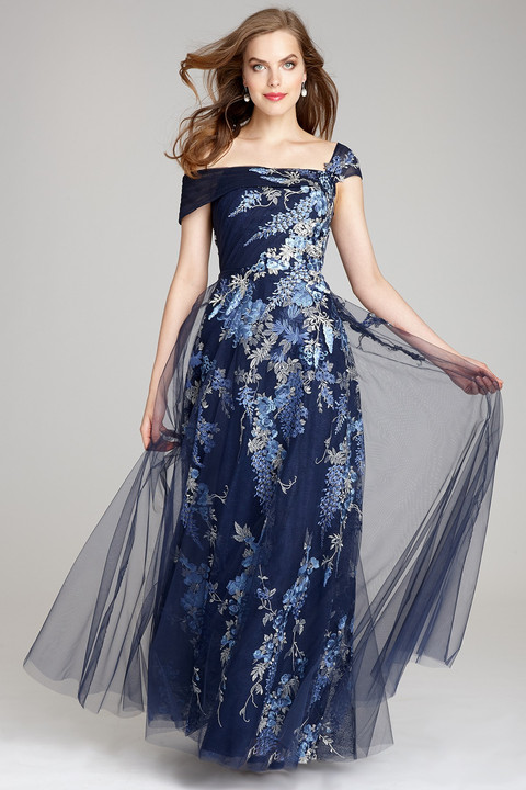 Floral Navy Surplice Plus Size Ball Gown Mother Of The Bride Dress