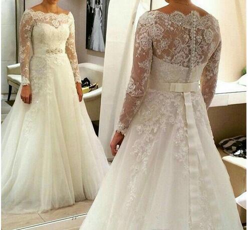 Xw141 Plus Size Full Lace Wedding Dress A Line Long Sleeves