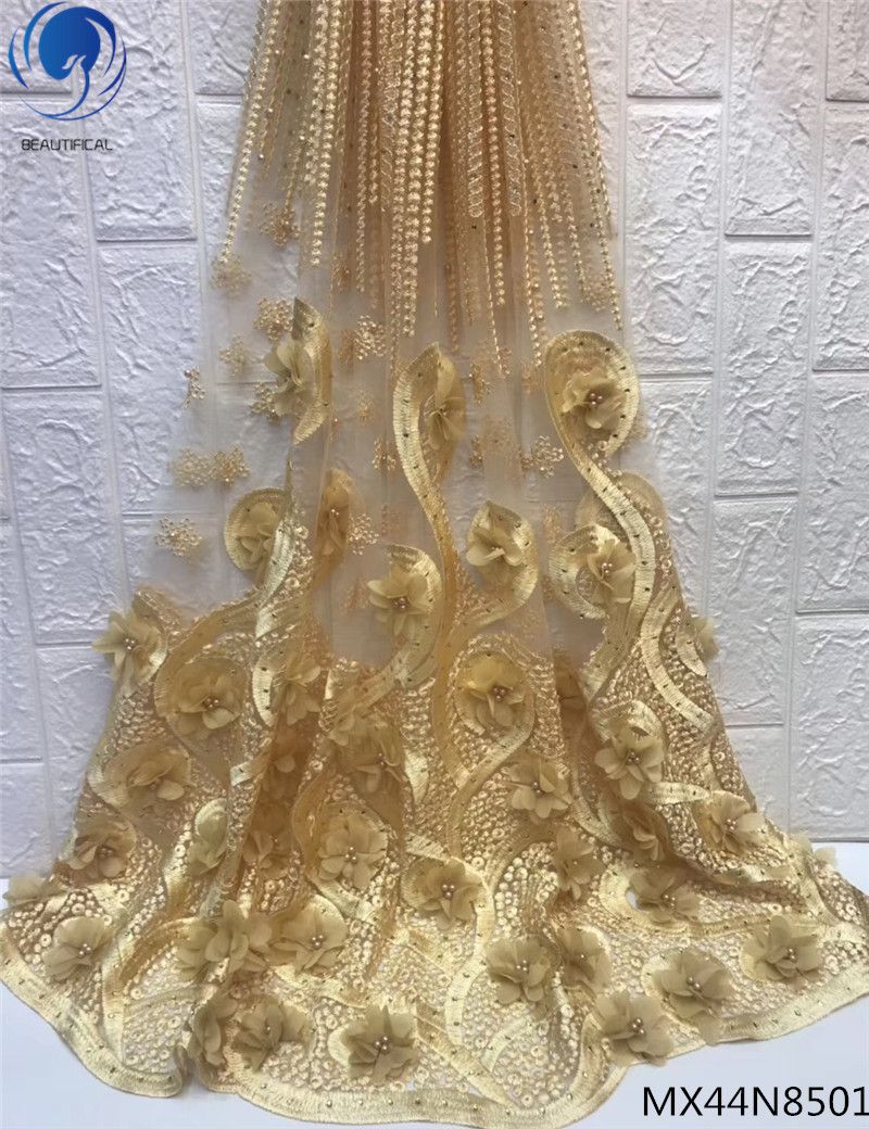 2020 Gold African Lace Fabric 2019 Embroidered Nigerian 3d Net