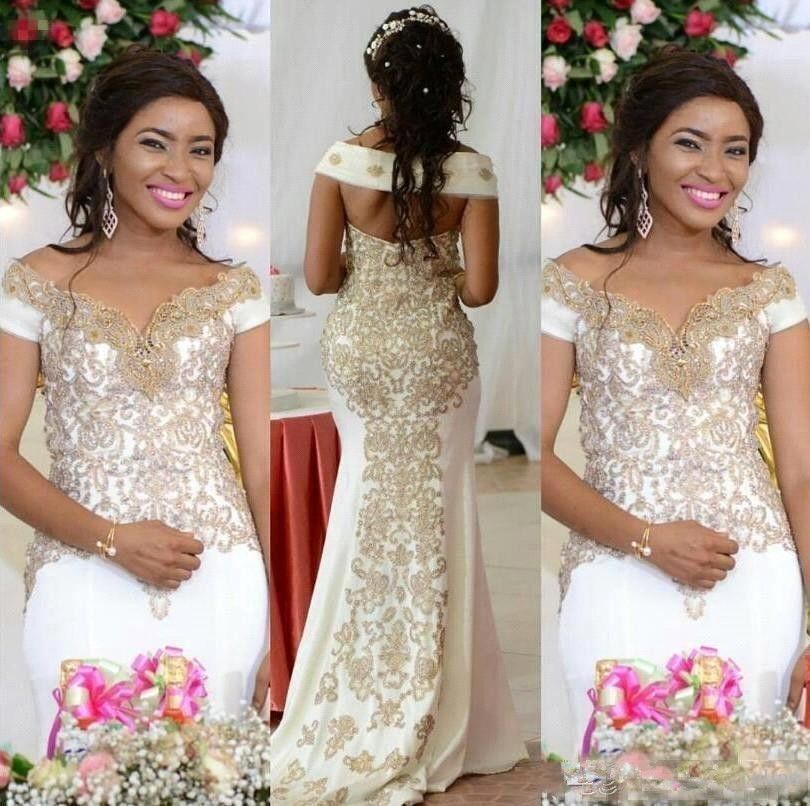 2019 New Design Arabic Gold Beaded Mermaid Wedding Dresses V Neck Satin South Africa Bridal Gowns For Garden Country Robes De Mariee Bc1485 One Shoulder Wedding Dress Online Wedding Dresses From Magicweddingdresses