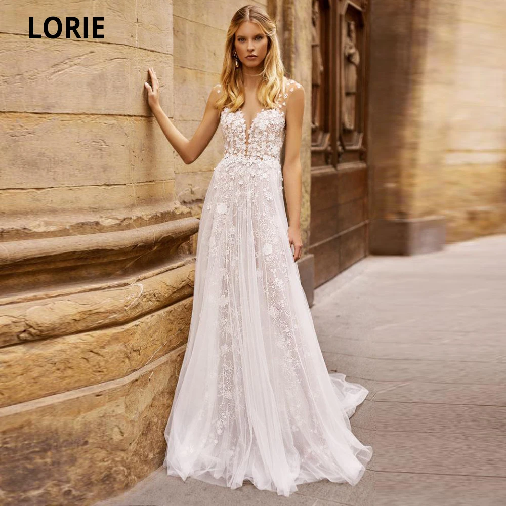 Lorie Gorgeous Ivory Wedding Dress Beach 2020 V Neck Sleeveless