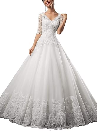 Ants Women S Modest Half Sleeve Ball Gown Lace Wedding Dresses For