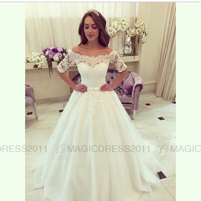 Clover Bridal 2017 Bateau Off Shoulder Half Sleeves Lace Ball Gown