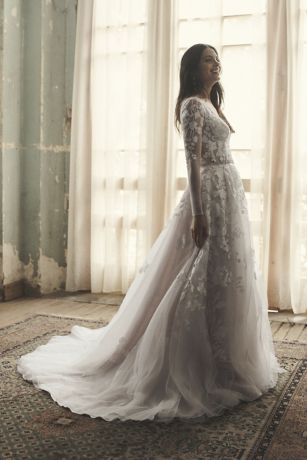 Illusion Sleeve Plunging Ball Gown Wedding Dress David S Bridal