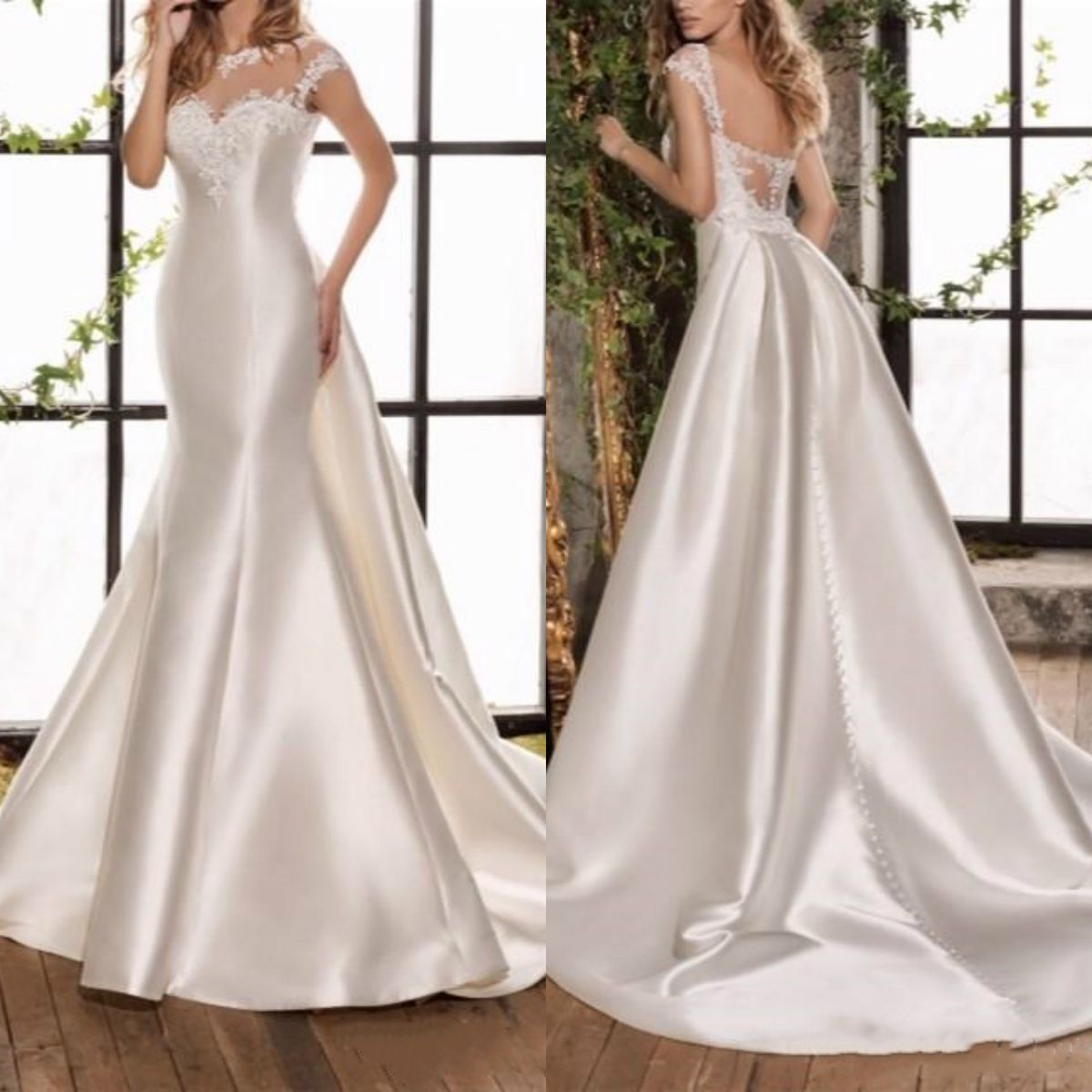 2019 Modern Ivory Satin Mermaid Wedding Dresses Detachable Train