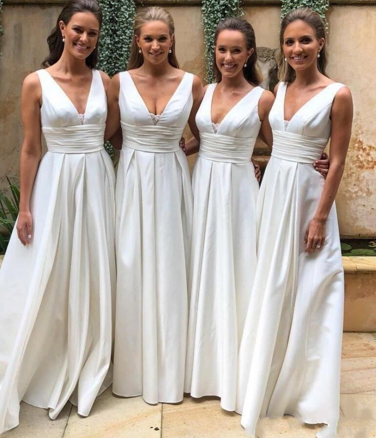 2020 Ivory Country Bridesmaid Dresses V Neck Draped Floor Length