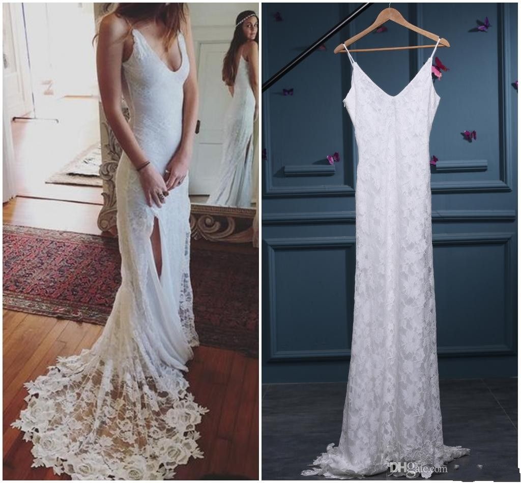 Sexy Bohemian Lace Wedding Dresses Grace Backless Spaghetti Strap