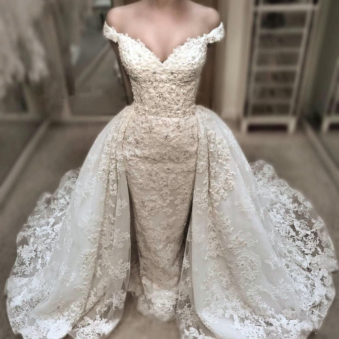 High End Dubai Mermaid Lace Wedding Dresses Detachable Skirt