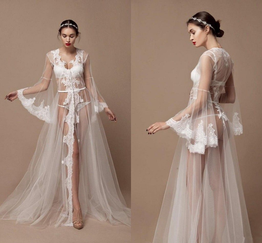 Discount 2019 New Sheer Lace Wedding Robes Cheap Long Sleevs Custom Made Bridal Morning Robes Bridal Bridesmaid Sleepwear Wedding Dress Bridal Gowns Wedding Dresses Off The Shoulder A Line Wedding Dresses From