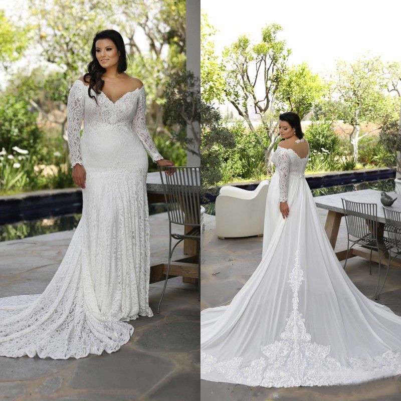 Discount Plus Size Wedding Dresses With Long Sleeve 2019 Modest