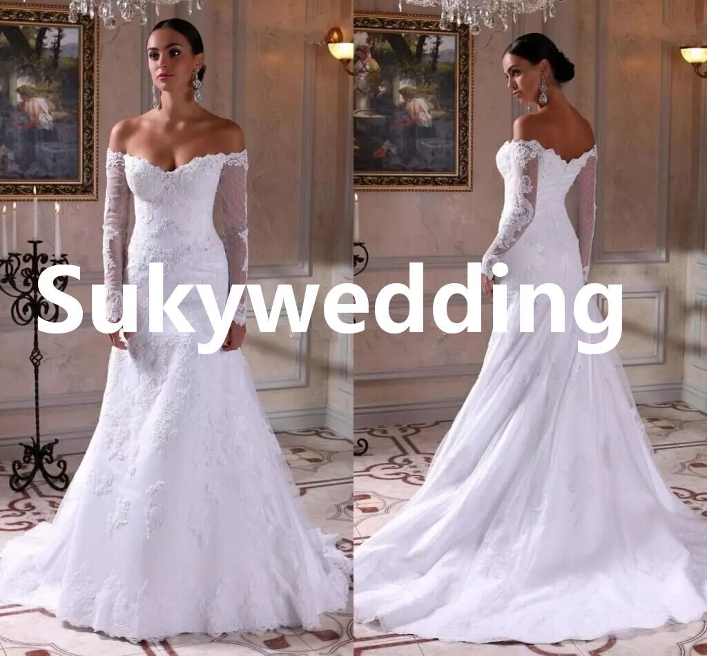 Elegant Wedding Dresses Mermaid Lace Satin Mature Bridal Dresses