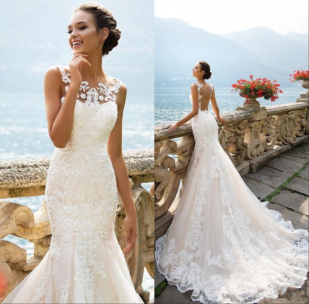 Stunning Mermaid Full Lace Wedding Dresses Vintage 2019 Crew Neck