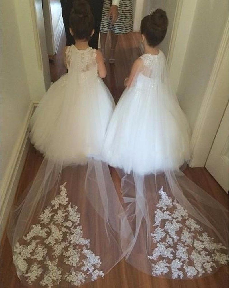 2020 Cheap Flower Girls Dresses For Weddings Lace Illusion White