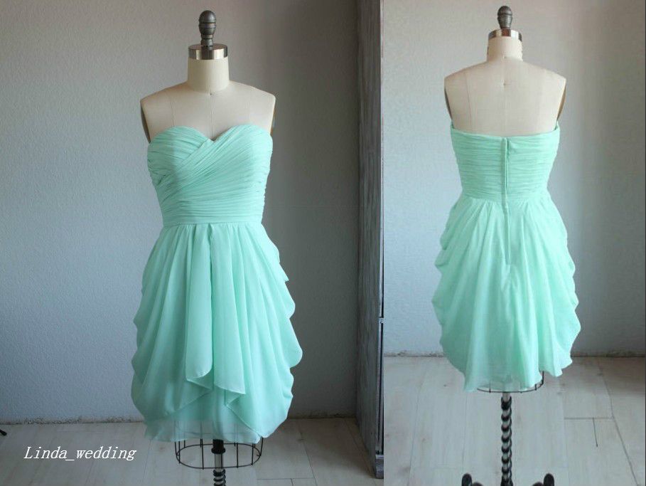 Mint Blue Short Bridesmaid Dress Simple Sweetheart Chiffon Maid Of