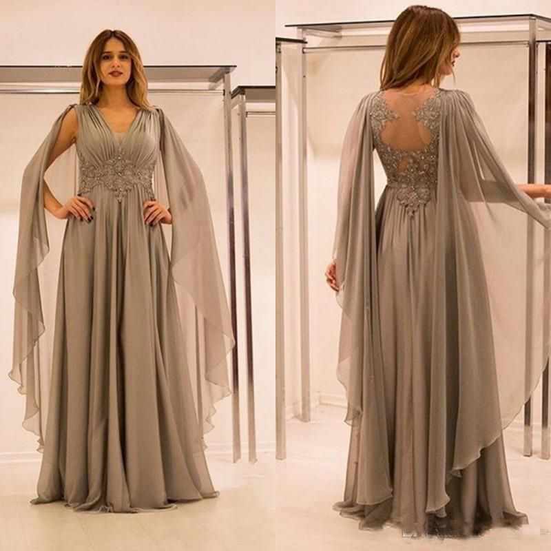 2020 Chiffon Mother Of The Bride Dresses With Cape V Neck Lace