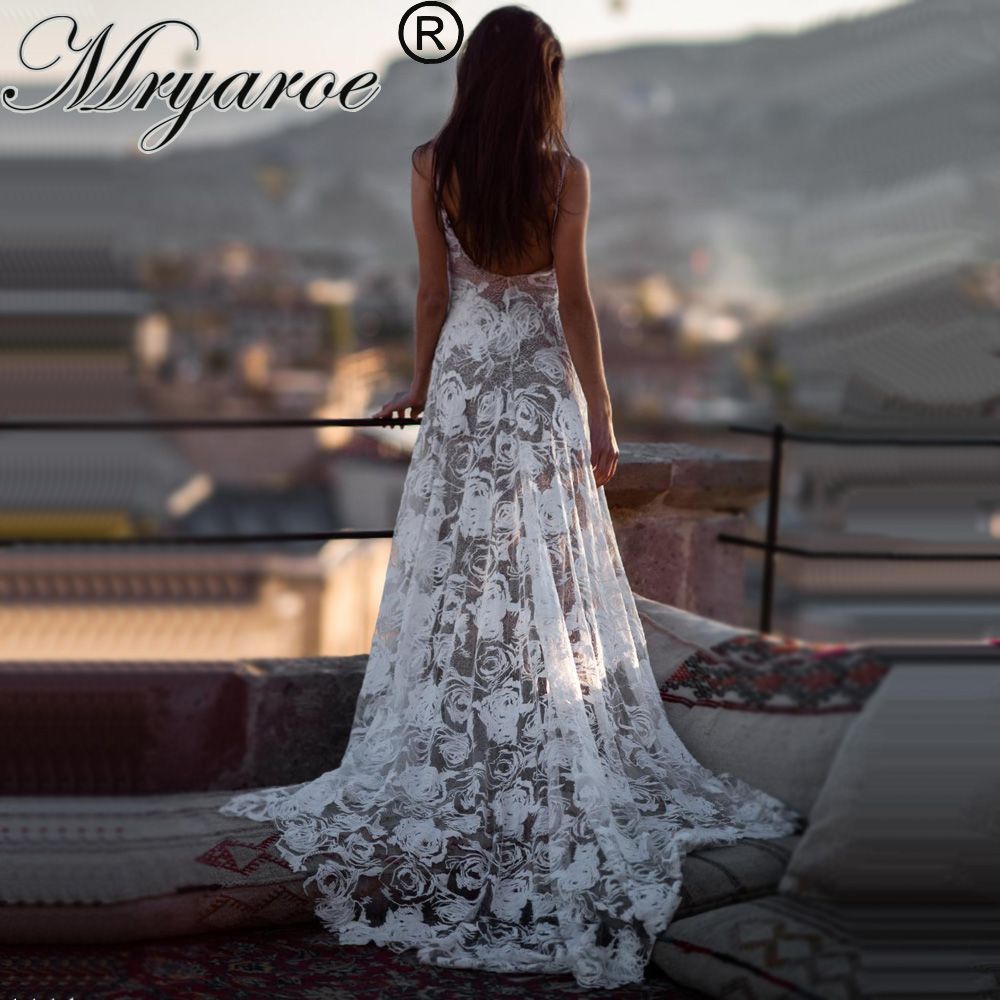 Discount Mryarce Stunning Boho Wedding Dress Sexy Open Back