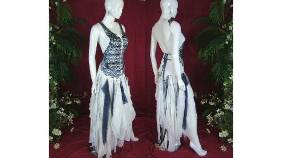 Navy Blue White Wedding Dress Beach Dress Alternate Wedding Etsy