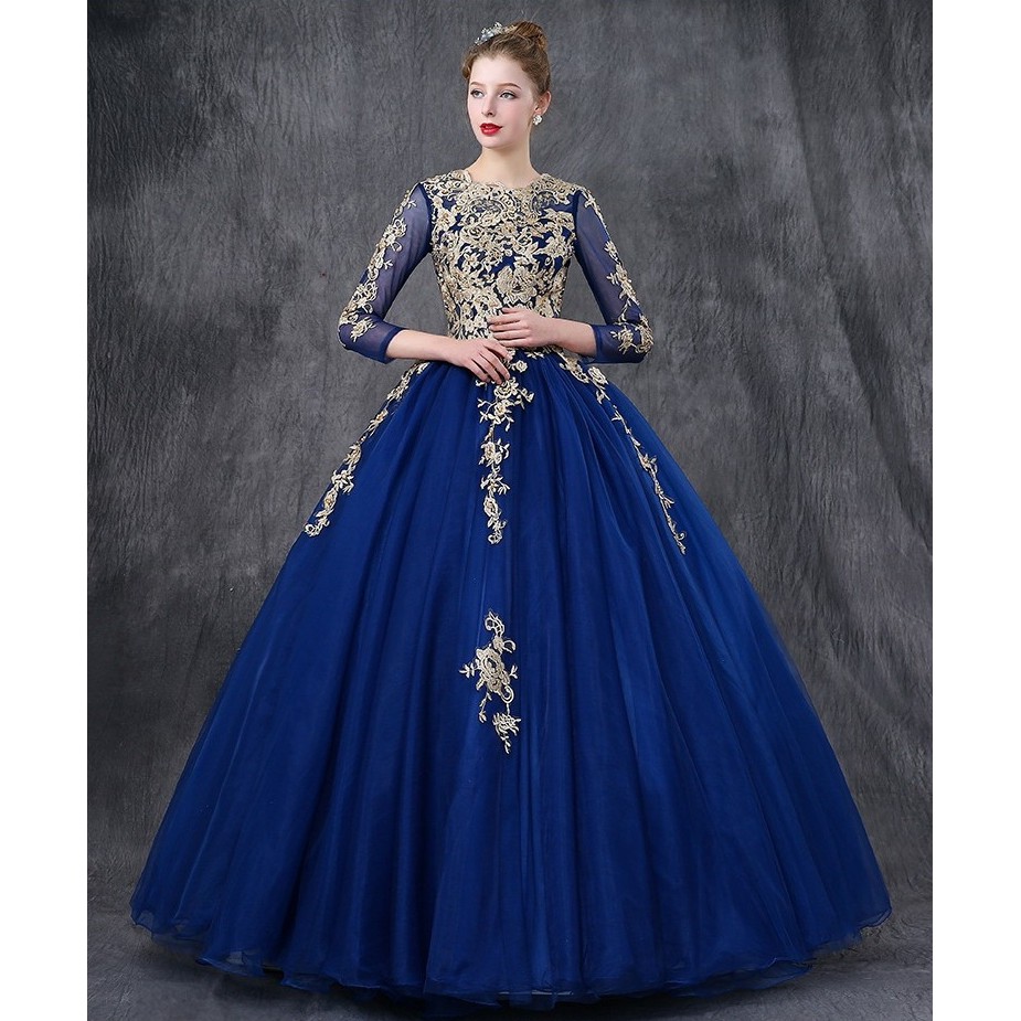 S 2xl Navy Blue Long Sleeve Floral Fairy Cinderella Muslim