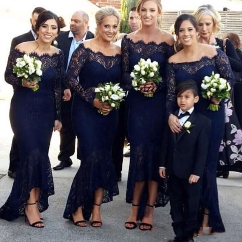 Dark Navy High Low Lace Mermaid Bridesmaid Dresses 2020 Off