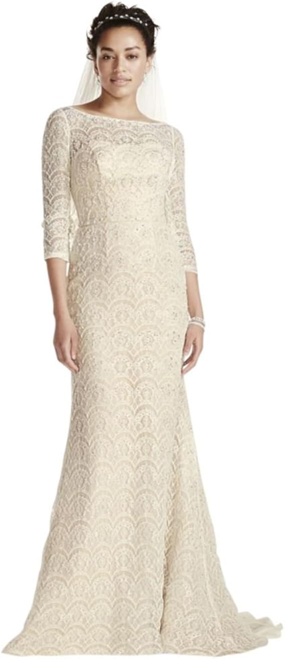 Oleg Cassini Beaded Lace 3 4 Sleeved Wedding Dress Style Cwg711