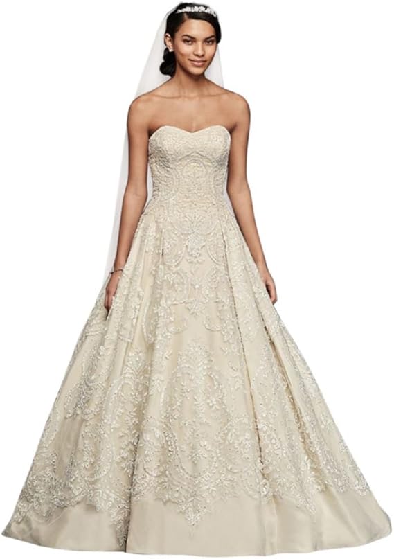 Oleg Cassini Beaded Lace Tulle Wedding Dress Style Cwg635 Solid