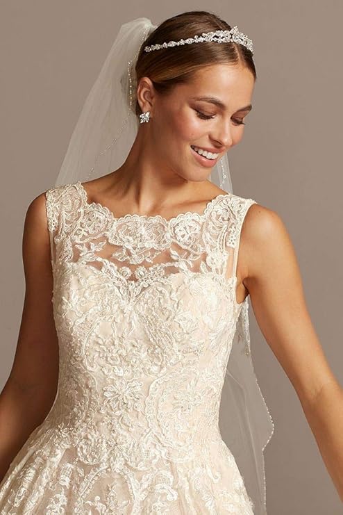 Oleg Cassini Wedding Dress Cwg 780 Beaded Lace Pleated Skirt
