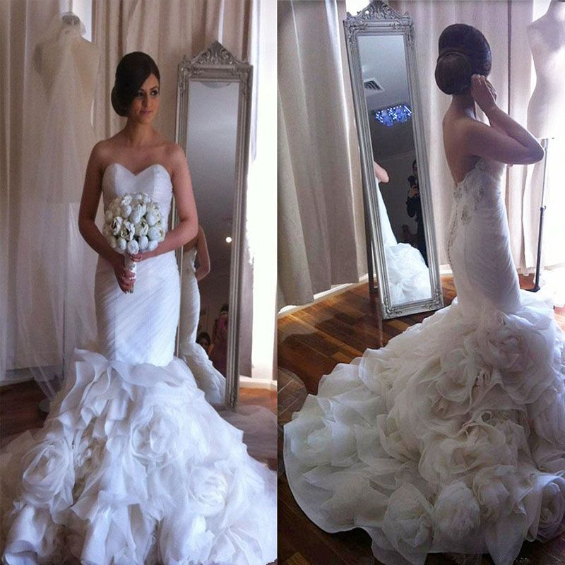 Stunning Mermaid Wedding Dress Fit And Flare Ruched Top Ruffled Skirt Oversize Flowers Trumpet Bridal Gowns Low Back Beads Embellish Mermaid Style Dress Mermaid Wedding Dresses Uk From Forever Love U 236 19 Dhgate Com