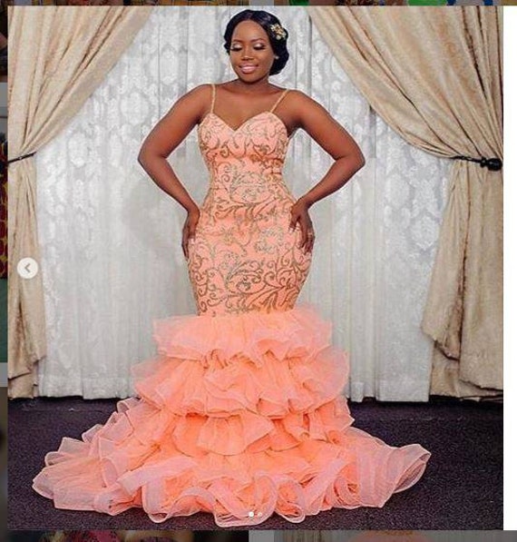 Peach Wedding African Prom Dress African Mermaid Dress African Etsy