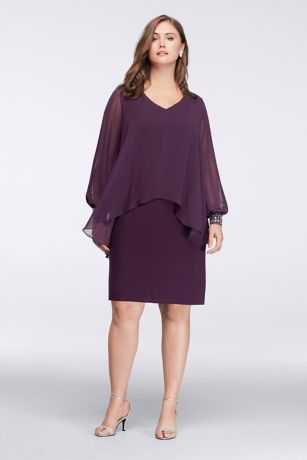Short Chiffon Plus Size Dress With Beaded Capelet David S Bridal