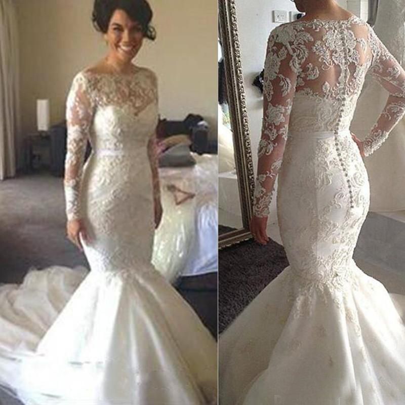 Long Sleeve Wedding Dresses Plus Size Mermaid Sheer Covered Buttons Online Shop China Lace Beaded Bridal Gowns 2018 Canada 2019 From Lokey Wedding Cad 206 85 Dhgate Canada