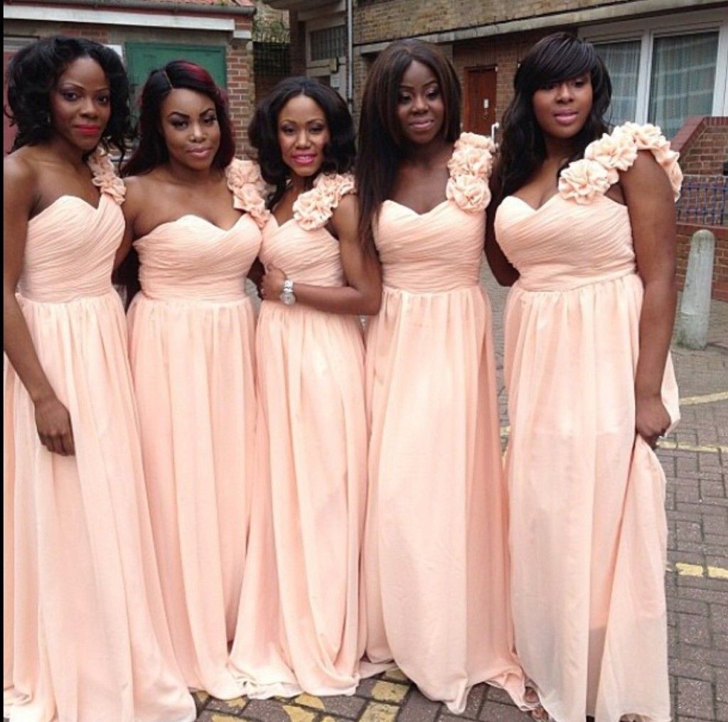 Sexy Peach One Shoulder Bridesmaid Dresses Long Chiffon Africa